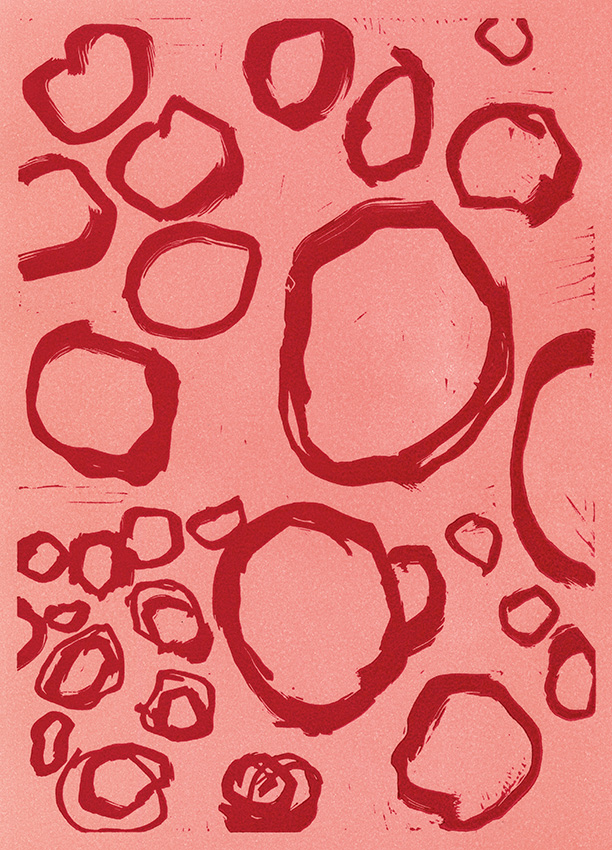 the second out of twelve (not counting monchrome plate prints) linocuts in the artist's book "2024", published in 2024.
