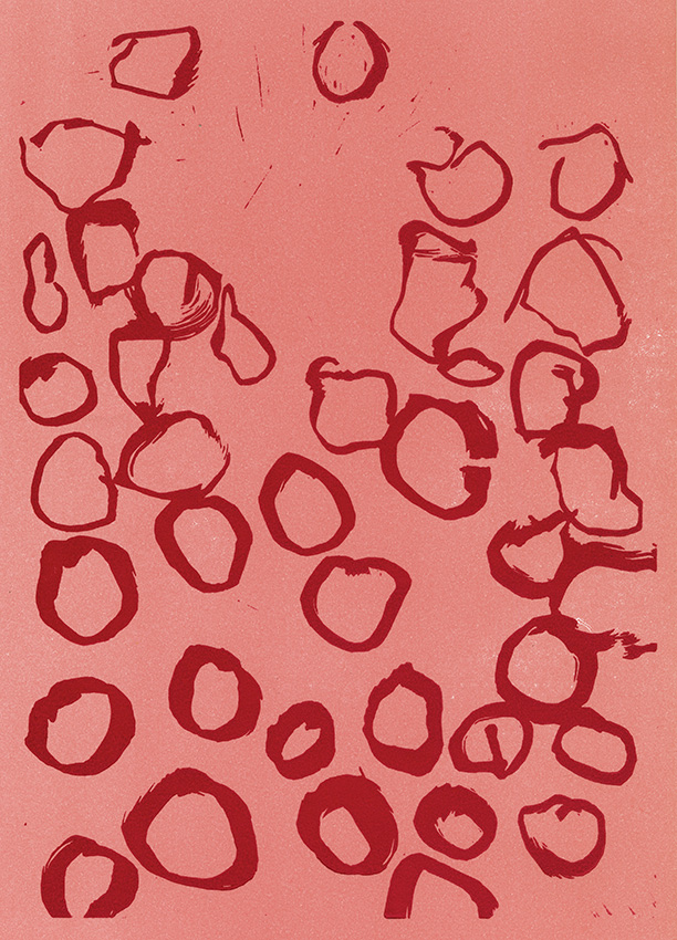 the third out of twelve (not counting monchrome plate prints) linocuts in the artist's book "2024", published in 2024.