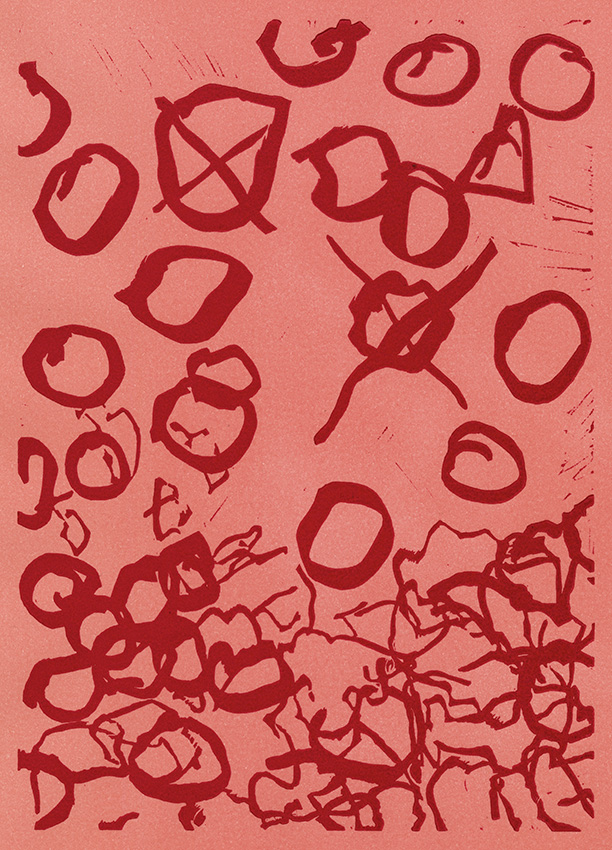 the fifth out of twelve (not counting monchrome plate prints) linocuts in the artist's book "2024", published in 2024.