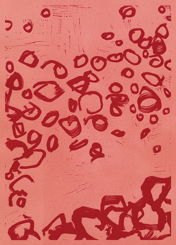 the sixth out of twelve (not counting monchrome plate prints) linocuts in the artist's book "2024", published in 2024.