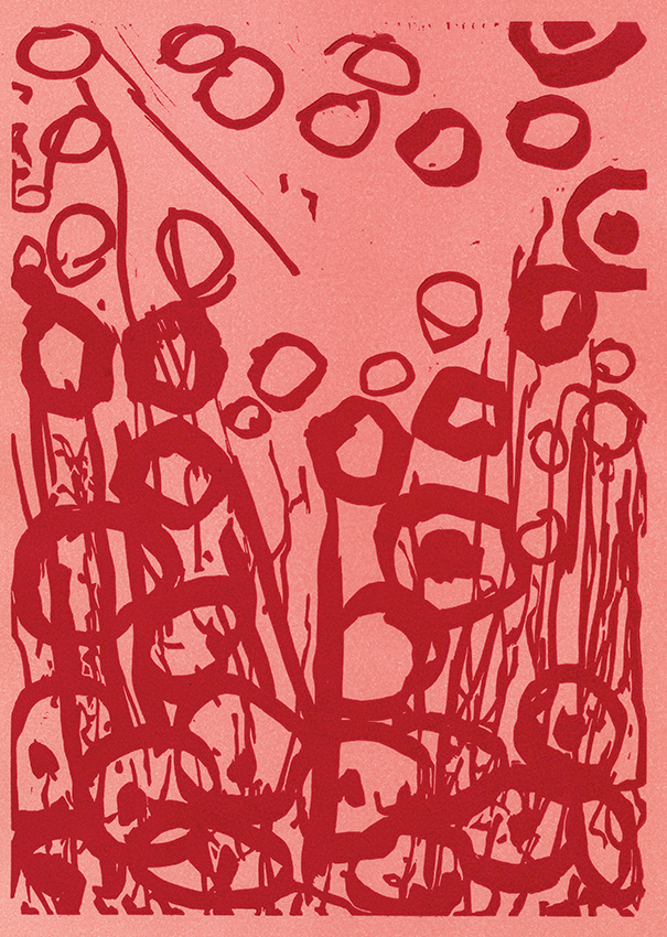 the seventh out of twelve (not counting monchrome plate prints) linocuts in the artist's book "2024", published in 2024.