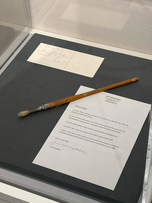 Man Ray's brush, once a gift from Juliet Man Ray to JS, in 2024 a gift to Teruo Ishihara from JS, with letter.