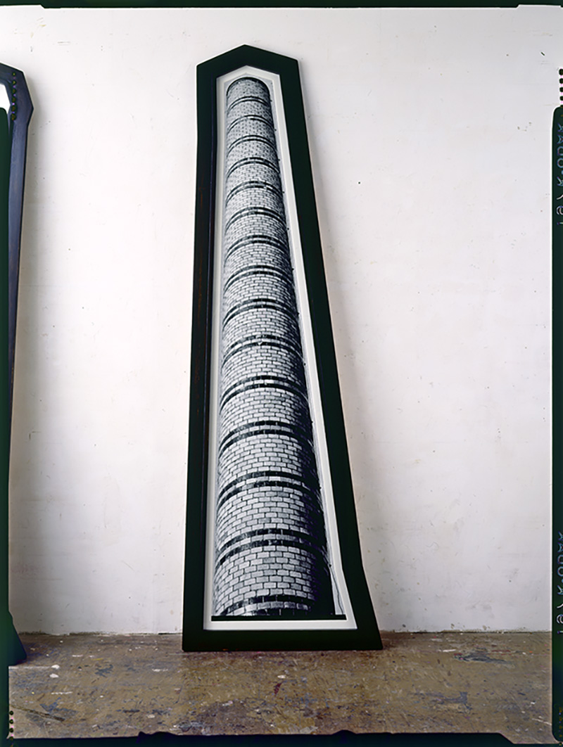 photo-object, 268,5 x 87,5 cm, 1991. One of eighth very large "towers" made in 1990-1991, here photographed 1992 in the studio with the new 4x5" camera.