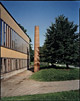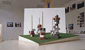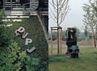 I det högsta tornet är 31 bokstäver staplade, tillsammans bildar de i klartext följande sats husets motto: » Nicht auf halbem Wege stehen bleiben « (Inte stanna på halva vägen). Lika många bokstäver är fördelade på de båda andra stängerna men här går det inte att läsa dem på något vettigt sätt, för nu är meddelandet i kod. Jag använde en komplicerad kod, men visste samtidigt att det faktum att klartext och kodtext presenterades tillsammans skulle möjliggöra för en hängiven kodknäckare att lösa chiffret och finna kodens nyckel. Denna person skulle sedan kunna »läsa« ytterligare fem skulpturer fem »Satelliter«, utspridda runt byggnaden, som består av bokstavskonstruktioner i granit eller brons. Samtidigt var skulpturerna visuella gestalter som överhuvudtaget inte behövde »läsas« för att sprida associationer i olika riktningar. Ett konstverk kan aldrig reduceras till endast en betydelse.