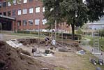 Arbetet lokalt började med att grunden grävdes i början på augusti. Det krävdes ett stort hål för att kunna komma åt att gjuta de fem fundament som ingenjör Manfred Baumann i Berlin hade ritat. Under tiden svetsade JG Rostfria på Lidingö fast rundade hättor på fem mycket kraftiga stålstänger, slipade och borstade. Att sedan sätta dessa nästan hundra kilo tunga stänger på plats i de därför avsedda urtagen i fundamenten, rikta in dem absolut lodrätt i en ställning av Burton-rör och fixera dem med snabbhärdande cement var lite nervöst för tänk om de skulle fastna snett! Men med förenade ansträngningar från Gunnar och Erik Jansson, Petter Eklund och undertecknad, så gick också detta väl. Den 25:e augusti kom bokstäverna på plats. Med hjälp av den skicklige grävmaskinisten Anders Grundemark kunde stenbokstäver och stålbokstäver lyftas högt upp och försiktigt firas ner på rören och fixeras på rätt plats i förhållande till underliggande bokstav.
