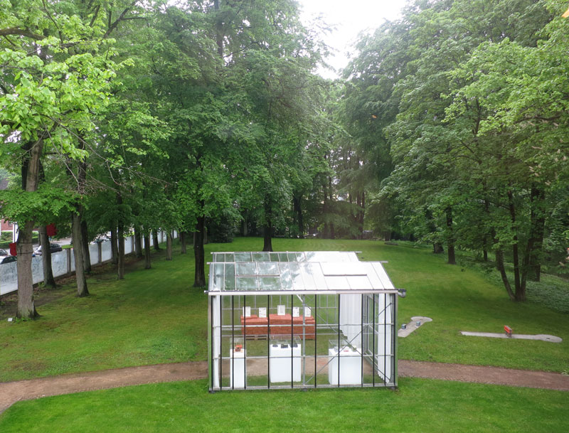 The exhibition, curated by Martin Henatsch, features 75 artists, which have work either in various buildings on the Foundation grounds, or in a series of glass houses erected for the purpose.