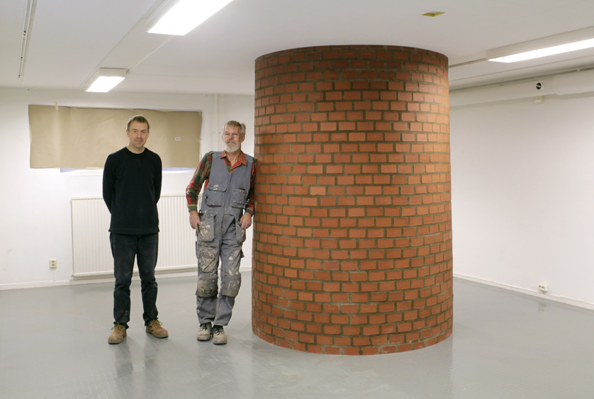at Konsthuset Uppsala Konsthall, November 2012. As has been the case for all chimney projects large and small, JS worked as a bricklayer's assistant.