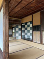 In Kyoto, Sunday afternoon. A guided tour (booked months ago) through Villa Katsura and its gardens. You may not enter the buildings, only look inside. On this picture a tea house, for the tea ceremony. Designed in the 17th century. The beauty.