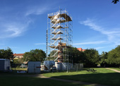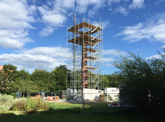 We're two meters from the top and hope to finish on Tuesday. Today is Saturday. I have the weekend "off" and long to go home, to Berlin. Uppsala used to be my home, a long time ago, but perspectives change. Yesterday I met with musician friends, used to playing all over the world, and a comparison came up: it feels like I'm on tour. I'm not playing gigs, though, I'm building a "tour", which is French for tower. The only way is up.