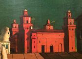 I am in Ferrara. My friend Gerd Roos has curated, with Paolo Baldacci, a show of Giorgio de Chirico's Ferrara years, 1915-1918, in Palazzo de Diamanti. It will be opened tonight, by the Italian president. I arrived yesterday and was able to spend a couple of hours in the show while final installation work was going on. Such a privilige: this is a unique exhibition which will never be possible to repeat. It has all the major paintings he did in this period paired with work by Carra, Morandi and de Pisis, also done here. They were all in the military, there was a world war going on, still they were allowed to work, being shielded from front line duty.
