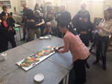I was then given free hands, and came up with a crossover between cake and psycho-mapping (almost), applied to Sweden. Only would I employ camouflage pattern, instead of the psycho-mapping copy procedure. I soon found out that there is a standard Swedish military camouflage pattern, called M90, and that this has four colours (dark greens, forest colours). I modified this pattern to employ six colours instead, and borrowed the "rainbow" colours from the HBTQ-flag. The cake was produced in the last couple of days by the highly professional Chokladfabriken in Stockholm (I met with them briefly while in Stockholm at the end of March). It was about one meter long and covered with marzipan camouflage on top, while being innocently white on the sides. Its inside was all dark with some crispy "bullets" hidden in the chocolate, in order to make it crunchy when you take a bite... For an interview I was thinking about what to say about its metaphorical content and made a note of the fact that camouflage in general has two main patrons: the military who wants to make things disappear from view and blend into the background and the fashion industry, whose main purpose is to make its clients stand out from their background and be visible.