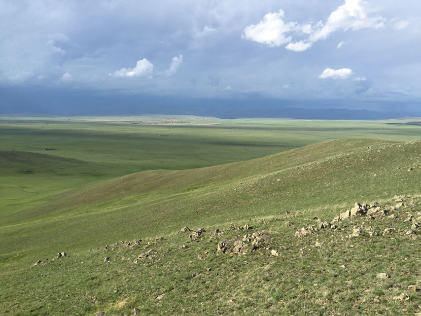 Ger camp (at the centre of image) on field outside Ulan-bator, Mongolia, July 31, 2015.