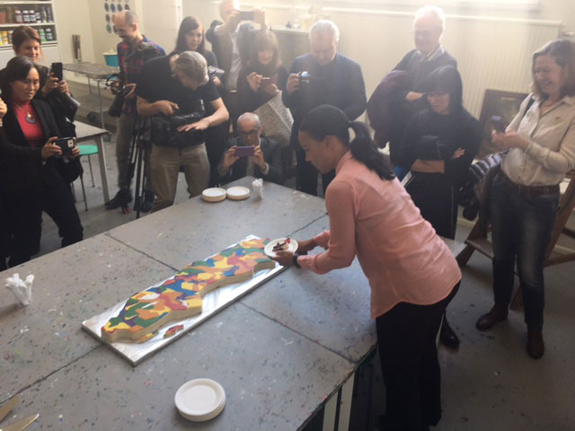 (Alice Bah) Cutting a cake. Konstakademin, Stockholm, April 15, 2016. Photo: Michel Östlund.