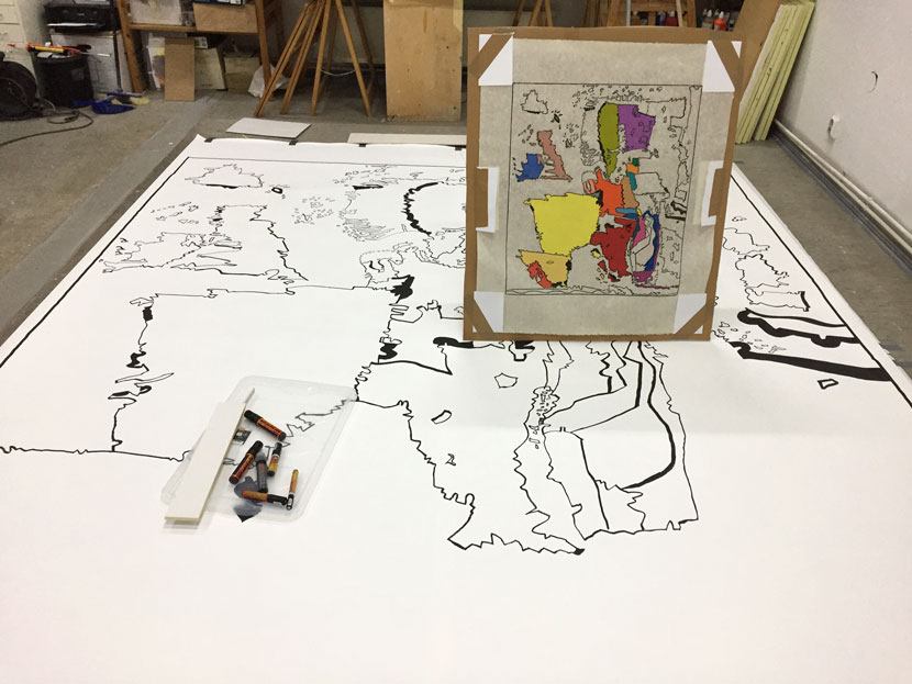 January 19, 2017. Working on a new "Europe Crumpled"on the floor in Westhafen studio.