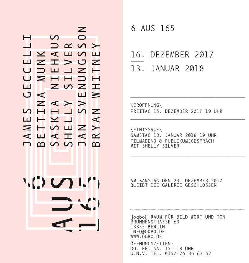 Invitation card for groupshow at oqbo, Berlin, December 2017.