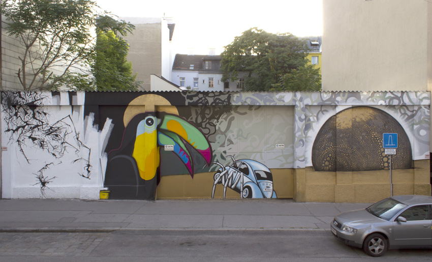Collective wall painting in the Hippgasse, Vienna 2012.