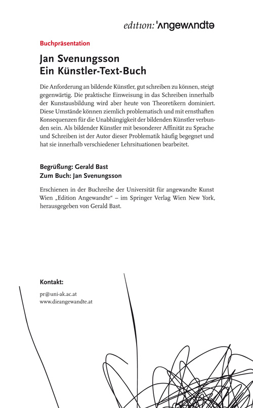 Invitation card (backside) for "Ein Künstler-Text-Book" presentation, October 18, 2012.