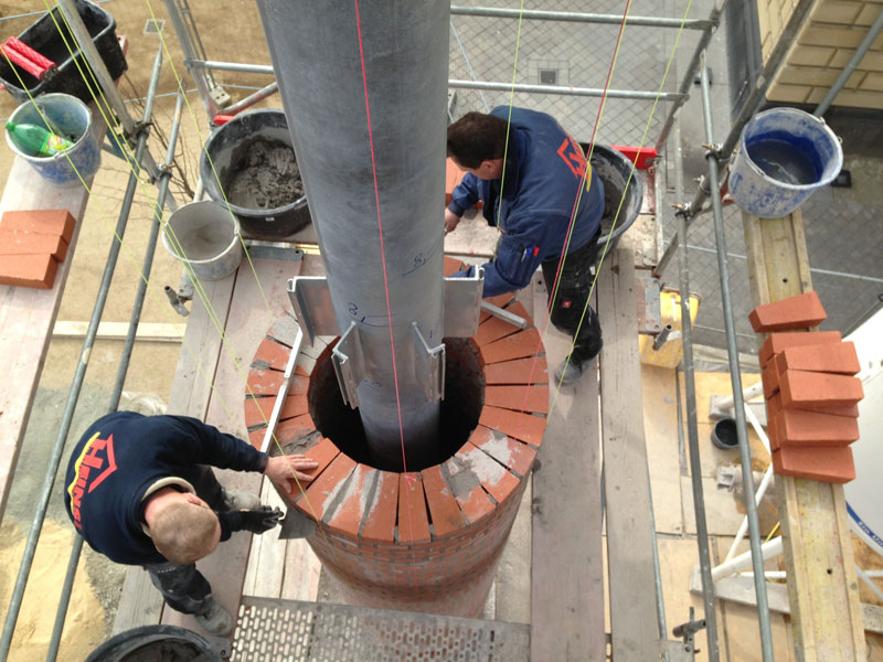 Nobert Kawaletz (left) and Jürgen Totzke at work on "First Chimney II" at Städelmuseum, Frankfurt, April 8, afternoon.