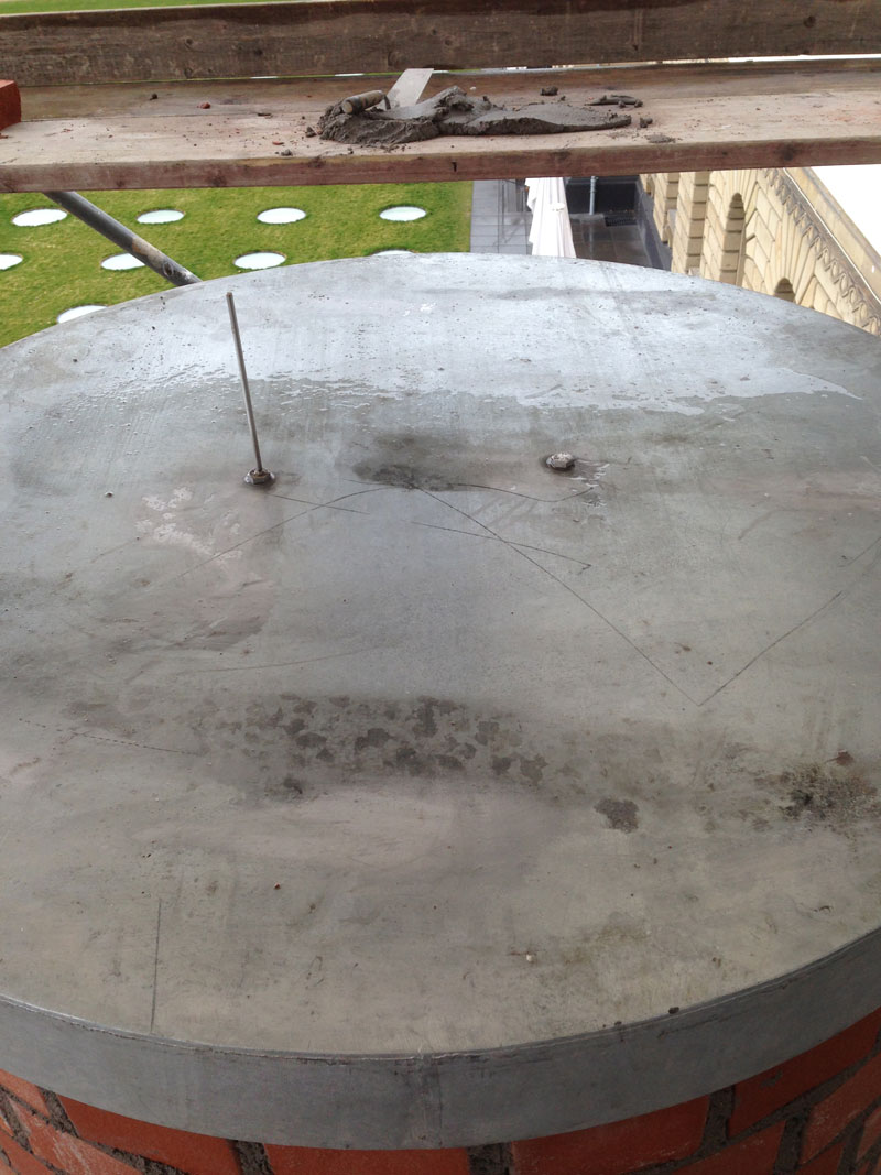 The lightning conductor on top of "First Chimney II", Städelmuseum, Frankfurt, mid-afternoon April 10, 2013.